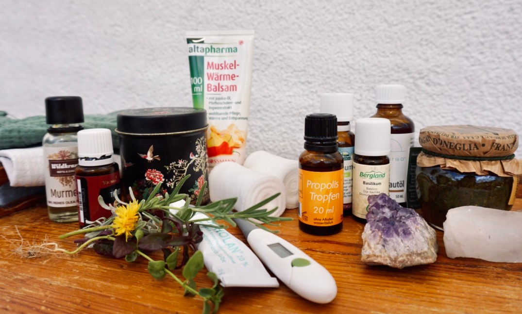 Wir haben wenig Chemie dabei. Denn: Karin setzt auf Naturheilkunde. Deshalb möchten wir euch hier einen kleinen Einblick geben, was wir alles einpacken für unsere Gesundheit auf Reisen.