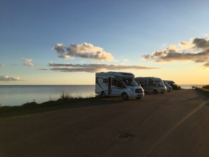 Im Norden Dänemarks herrscht reges Treiben am Stellplatz beim Hafen. Wir standen gar nicht da, wo das Wohnmobilschild ist, sondern direkt mit Blick zum Hafen (gegenüber der Touristinformation) – das gefiel und einfach besser und im Herbst war eh nicht viel los. In fünf Minuten erreicht man Hafen und Einkaufsstraße, aber dafür gibt es kein Strom und keine Entsorgung. Mit etwas Glück haben die Hafentoiletten geöffnet.