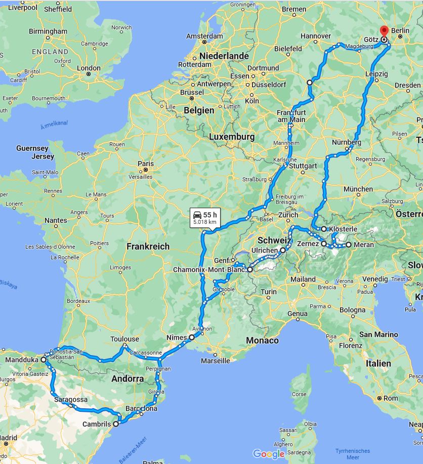 Als erstes stellen wir hier die Route vor, bei Google Maps grob abgebildet: