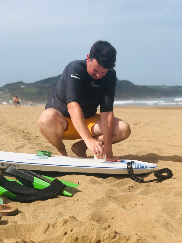Zarautz begrüßte uns mit wilden Böen, hohen Wellen und matschigen Stellplätzen. In der Nacht toste auch noch ein Sturm um unsere Autos. Bäume flogen umher und es wackelte wie in der Achterbahn. Während wir auf einem hohen Hügel am Meer standen, erwischte es uns alle mit voller Wucht. Der Hagel war so laut, dass wir dem Baby die Ohren zu hielten. Auch wenn es schlief als sei nie etwas passiert, sah draußen nach ca. 15 Minuten Unwetter alles vollkommen zerstört aus. Markisen waren abgerissen, Werkzeug umher geflogen, Äaste abgebrochen und vieles mehr. Am dritten Tag nach unserer Ankunft erlaubte das Wetter endlich ein Freiluftbad für das Kind und einen Surftag für die Eltern am Strand. Danach schworen wir uns, die Surfutensilien nie wieder diesen Hang hoch und runter zu schleppen. Wir hatten gar keine Energie mehr zum Surfen. Und wir hatten ja ganz vergessen, wann die Spanier Siesta machen…