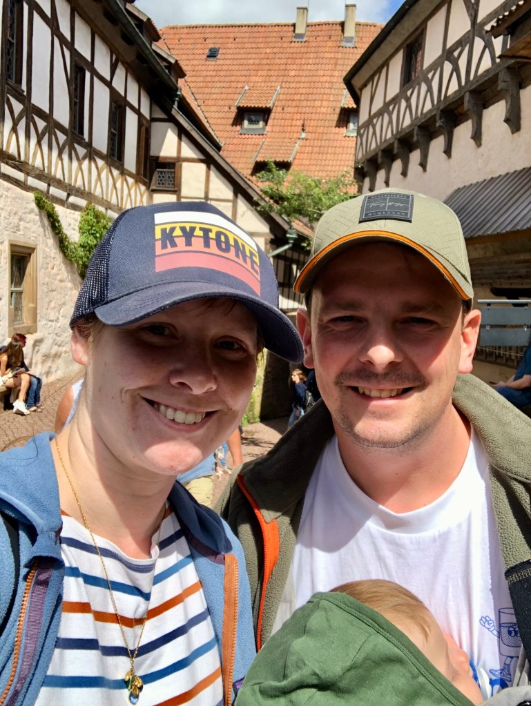 Den Auftakt machte Erfurt. Das war eigentlich nicht unser Plan. Aber bevor wir die Welt erobern konnten, mussten wir noch einmal ins Sauerland für eine Familienangelegenheit. So cruisten wir noch etwas durch bekannte deutsche Orte. Erfurt gefiel uns, der Stellplatz ist toll und hat eine gute Anbindung und nahe der Krämerbrücke fanden wir einen schönen Spielplatz, auf dem D. das erste Mal schaukelte. Was ein Spaß! Nach einem Besuch der weit bekannten Wartburg (Buggy hoch schieben ist echt anstrengend…), dem Besuch im Sauerland und einem Zwischenstopp in Fulda, begann das Abenteuer dann richtig. Der Patenonkel machte mehrere Tage mit uns Urlaub in Klösterle, Voralberg (Österreich).