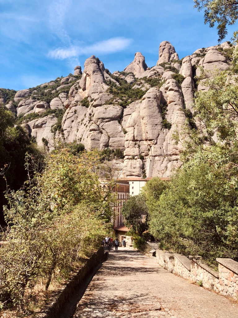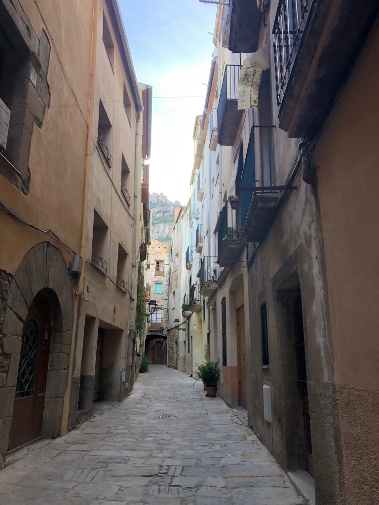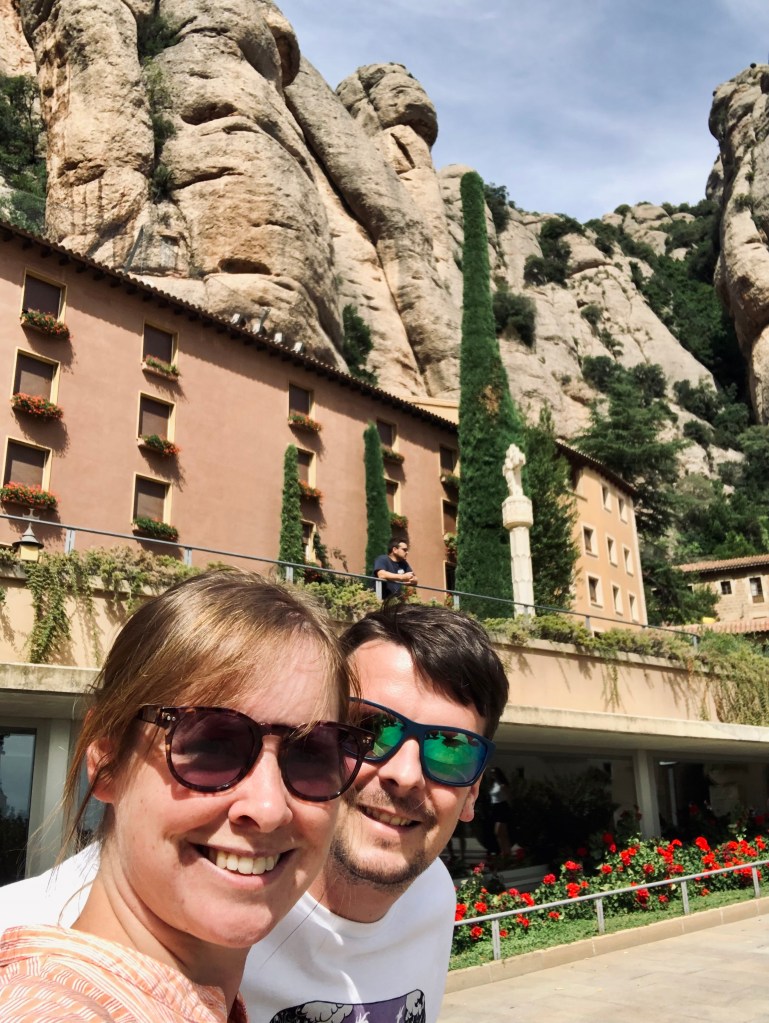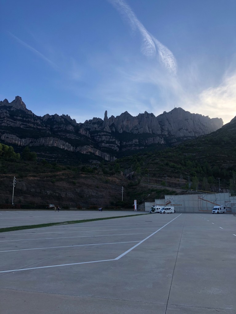 Der südlichste Punkt unserer Reise war dann Cambrills, nahe Barcelona. Wir verbrachten hier die wohl schlafloseste Nacht der ganzen Reise: Bei 40 Grad, ohne Klimaanlage, weil die Sicherung zu schwach war, neben den Mülltonnen auf der anderen Seite der Mauer, die nachts von drei verschiedenen Müllautos abgeholt wurden. Völlig gerädert reisten wir morgens ab und fuhren nach Montserrat, ein in den Felsen gebautes und sehr beeindruckendes Kloster. Im Ort aßen wir das leckerste Schokocroissant dieser Reise und schliefen völlig umsonst in seliger Ruhe inkl. Videoüberwachung. Wie schön, das war dringend mal nötig (Der Schlaf, nicht die Videoüberwachung).