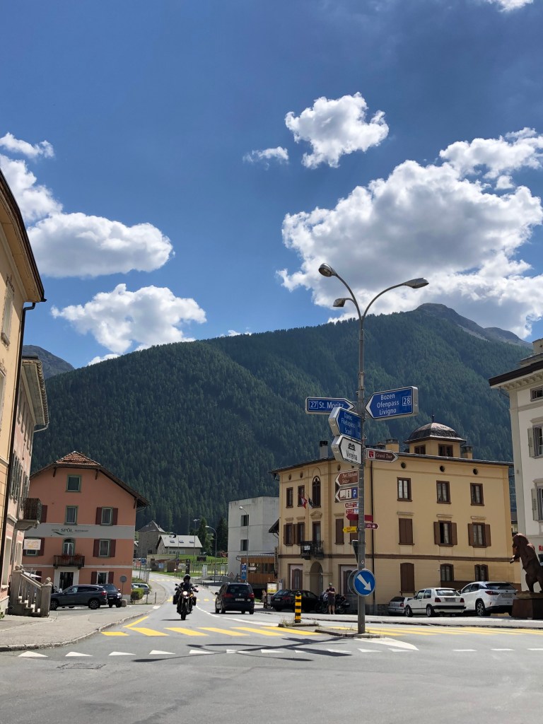 Zuerst fuhren wir über den Ofenpass von Italien in die Schweiz. Hinter der Grenze durchquerten wir den wunderschönen schweizerischen Nationalpark. Angekommen in Zernez, fanden wir ein schönes Plätzchen am rauschenden Bach, gönnten uns noch einen Snack im örtlichen Café und besuchten die sehr moderne und hilfreiche Tourist Info. Wir hatten ja kein Handynetz! Lange hielten wir es ohne Empfang und WLAN aber nicht aus und buchten uns einen entsprechenden Tarif. Die folgende kühle Nacht tat uns allen sehr gut!