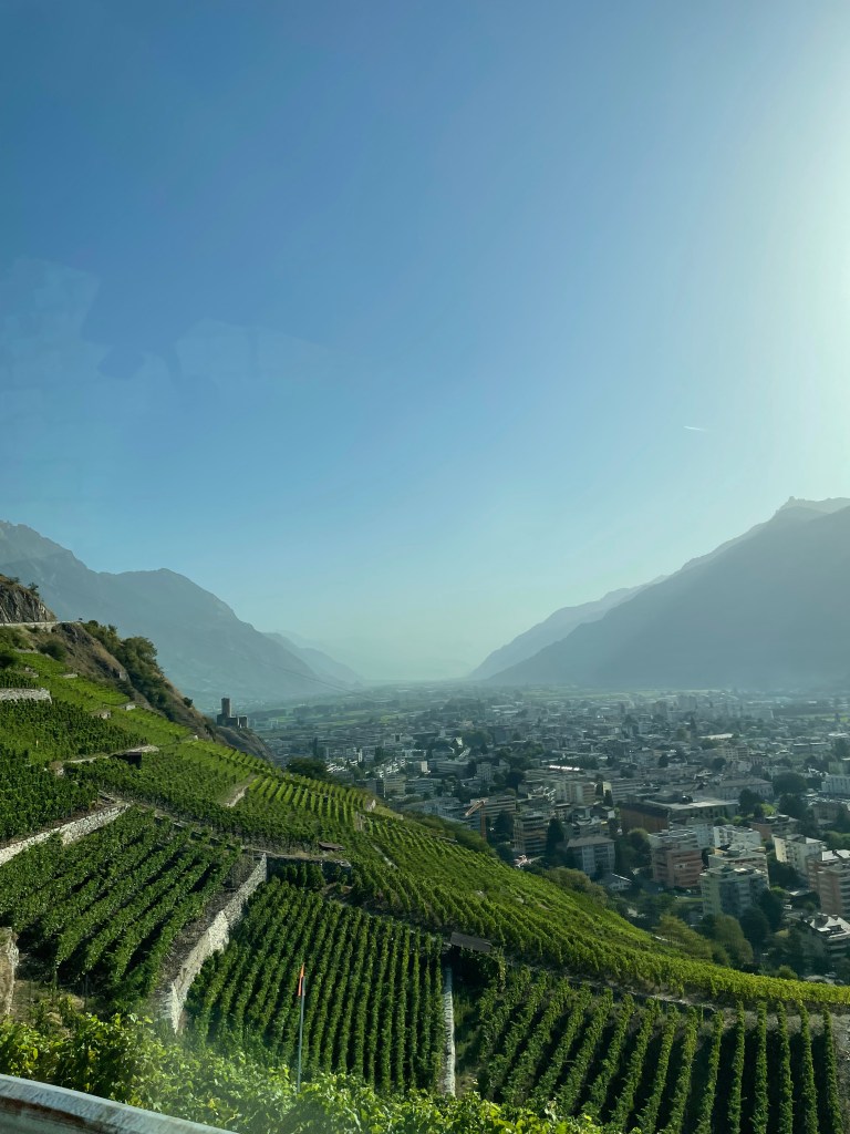 Wie schön! Das genossen wir alle sehr. Das Bärenland bei der Sonnenkopfbahn auf dem 2273m hohen Sonnenkopf werden wir, wenn D. größer ist, bestimmt noch einmal besuchen. Dann würde Karin auch gerne eine Wanderung zur Ravensburger Hütte machen, die ist nämlich fast um die Ecke. Wir kamen an, grillten gemütlilch, nutzten die tollen Sanitäranlagen des schnuckeligen Campingplatzes auch für ein Babybad und gingen viel spazieren. Nach diesen entspannten Tagen trennten sich dann unsere Wege wieder. Wir fuhren über den berühmten Skiort Ischgl und den beliebten Reschenpass nach Meran, Südtirol. Vorbei am Reschensee und dem badenden Kirchturm – wo man mit Womo aber fast nirgendwo anhalten, geschweige denn parken, kann – und durch die schönen Obstbaumplantagen ins feucht warme Meran, Italien. Dort waren wir leider etwas eingeschränkt. Vom Hotel und Campingplatz Prinz Rudolf konnten wir nur mit dem Bus in die Stadt fahren und somit längere Ausflüge in Richtung der schönen Wanderwege und hohen Berge mit dem Baby nicht bewältigen, das war sehr schade. Vielleicht auch etwas für einen Besuch in der Zukunft. Das Wetter war so schwül, dass D. die Tage am Womo nackig verbrachte und die Zeit im Pool der Dachterrasse genoss. Ursprünglich wollten wir gen Mittelmeer weiterreisen. Aber 40 Grad am Tag und tropische Nächte… das war uns dann doch zu warm. Zumal die Sicherung des Stromkasten bei diesem Stellplatz ständig raussprang und unsere Klimaanlage ständig ausfiel. Diese hatten wir doch extra für diese Reise montieren lassen… Somit entschieden wir spontan, die Reise über die Schweiz fortzusetzen. Dort war es wenigstens nachts schön kühl.