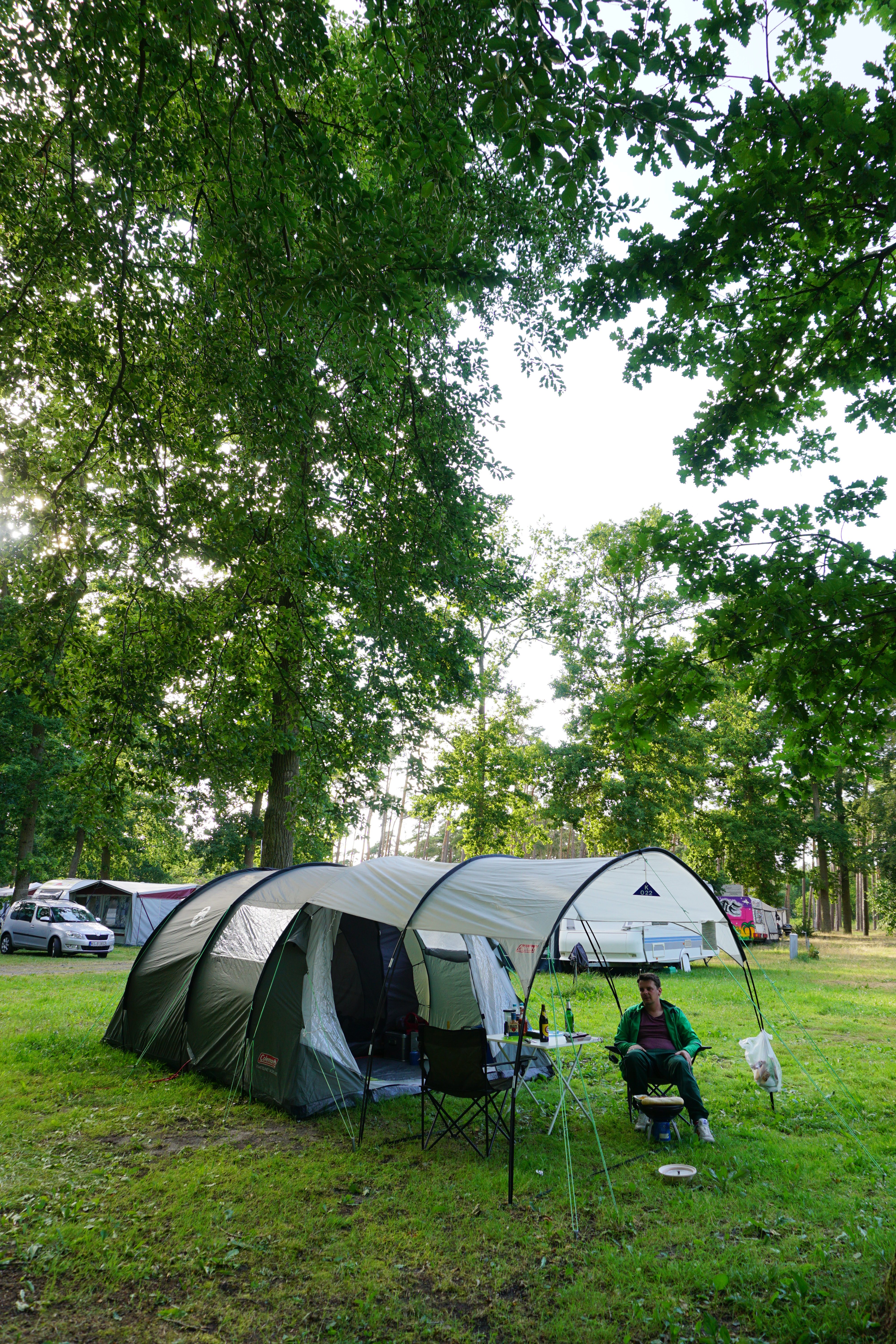 Nachdem wir mit dem Coleman-Zelt sehr gute Erfahrungen gemacht haben, entschieden wir uns auch für ein Vorzeit von Coleman, das natürlich zum Zelt passt. Offiziell wird es „Sonnendach“ genannt, aber wir nutzen es auch bei Regen 😉